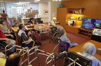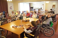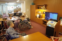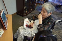 松戸の入居者様はとても優しい方ばかりなので、みんなでマイクを譲り合いながら仲良くカラオケをしています。
