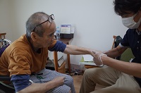 左手に橈骨神経麻痺が起きており、下垂手に対するリハビリを看護師が定期的に実施しております。