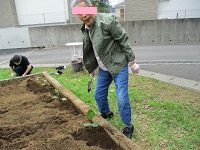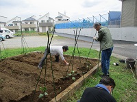 キュウリ、トマト、ナスを地植えして、ゴーヤをプランターに植えました。