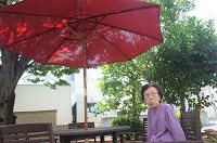 松戸のお庭に今年もパラソルを出しました。お散歩時の休憩に大活躍✨