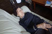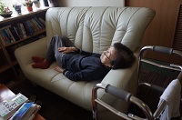 K様はご不在でして、どこに行かれたのかなぁと探していると、図書コーナーのソファーで寛いでいらっしゃるK様を発見しました。