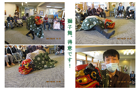裏面には施設長の特技でもある獅子舞をしている施設長の写真を入れてみました。