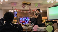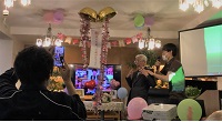 A様の幼少期から現在に至るまでのスライドショーを流したり、くす玉を割っていただいたり。