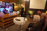 入居者の皆さまには1階にお集まりいただき、ご家族の方々にもリモートでご参加いただきまして、
