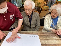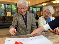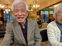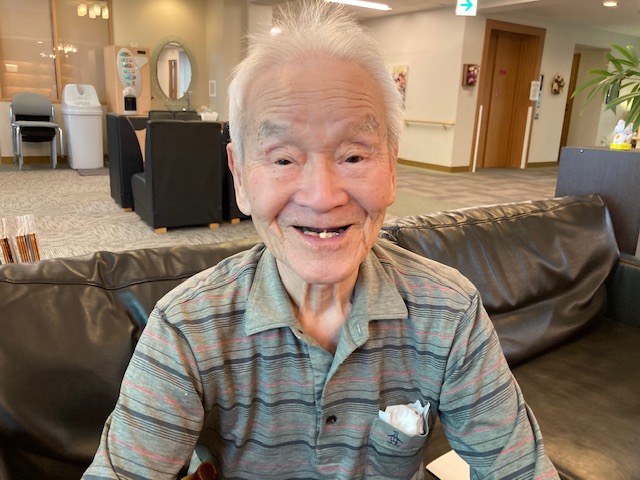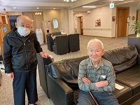 今日のお昼ご飯後に1階ラウンジでお喋りしていらした男性入居者様。