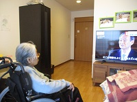 ご自分のお部屋でゆっくりニュースをご覧になる入居者様