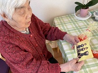 お部屋に戻り、娘様から頂いたポストカードを優しそうに見つめるU様。