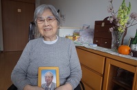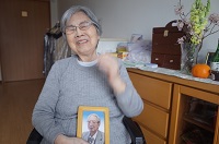 旦那様のお写真に手を合わせながら、