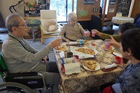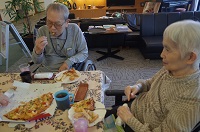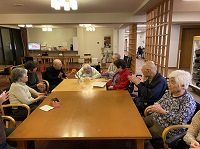 それを聞きつけたご入居者が集まり、普段一緒に話す事がない方まで一緒になって談笑されている様子です。