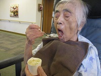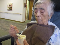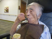 ここ最近は体調が優れず、ベッドの上で看護師の介助により栄養補助食品を召し上がっていました。