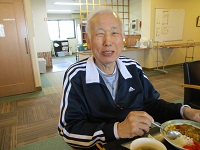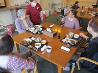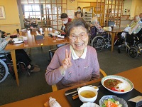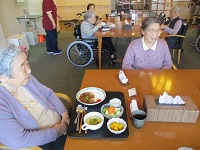 3階の入居者様ともすぐに打ち解けて、同じテーブルの方々と楽しくお喋りしています。