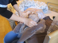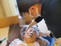 午後からは、体調が優れずご入浴が難しい入居者様に、熊谷ナースが洗髪をしてくれました。