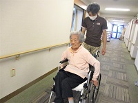 4枚目の写真はリハビリ室から車椅子をご自身で操作し、2階へお戻りになるところです。