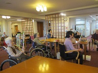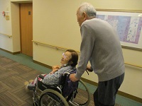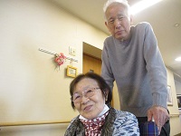 男性入居者様 「自分の運動にもなるからね。いつでも押してあげるから言ってね。」