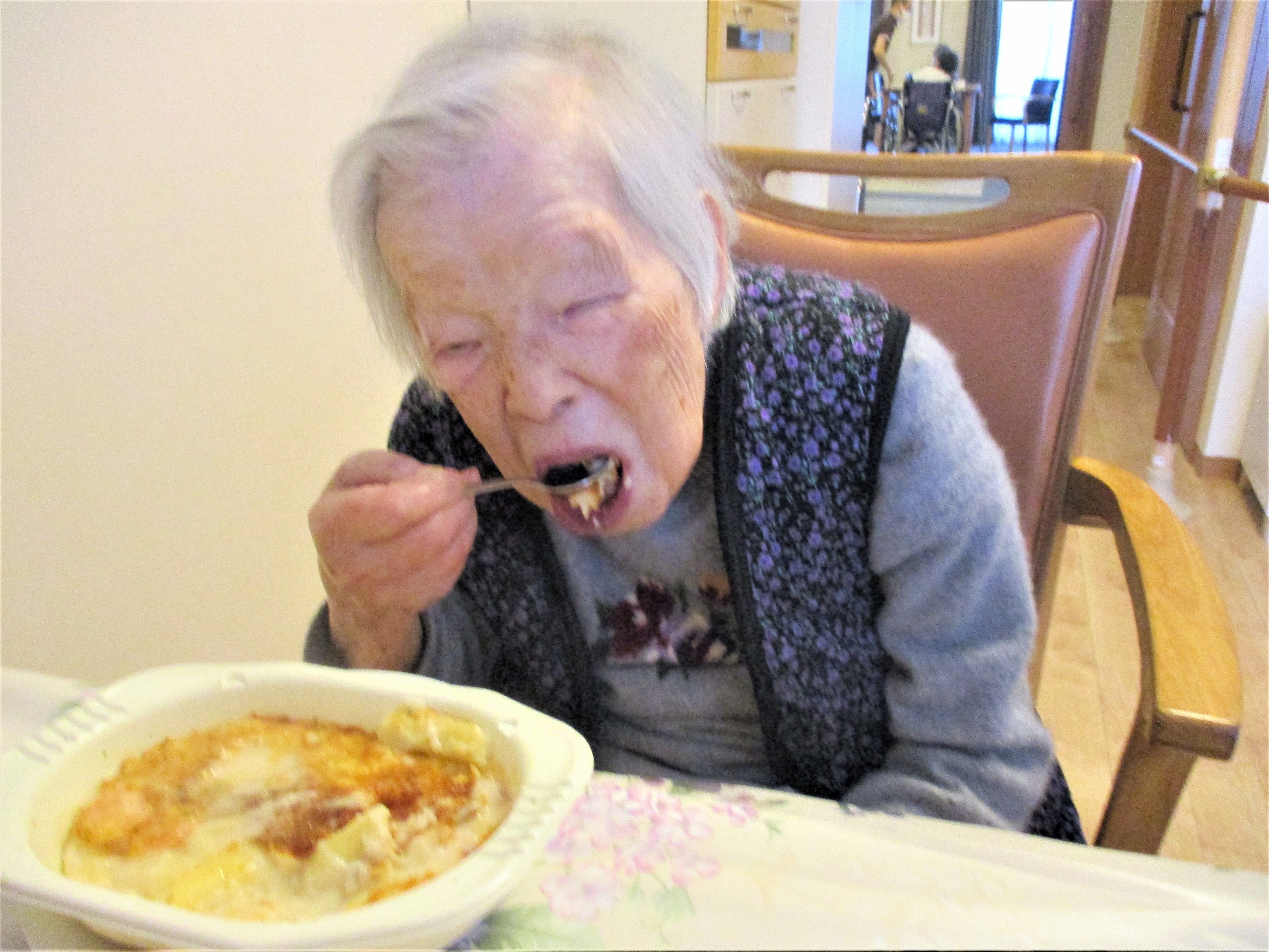 と仰ったので、冷凍庫に常備してあったご本人用のグラタンを提供いたしました