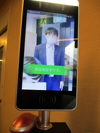 2枚目の写真のように画面に人が近づくだけで、自動で検温してくれます。