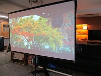 温泉の素を入れて、スクリーンには旅行記の動画を映し、温泉気分を楽しんでいただきました。