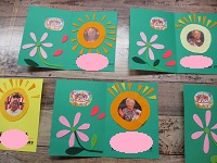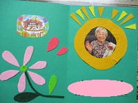 今月のバースデーカードはフェルトを使い、コスモスと太陽を