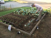 「シーハーツ松戸菜園」。今日は入居者様が、白菜を植え