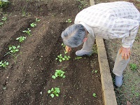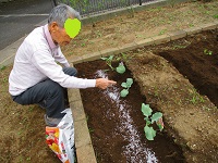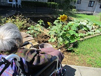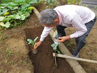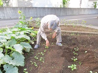 入居者様に、ブロッコリーの苗を植えて頂きました。