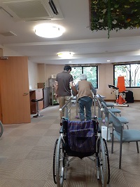 リハビリ室と事務所は近いので、皆様の声が聞こえて