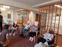 必然的に、大きな輪になり、真ん中に職員が入っての、