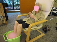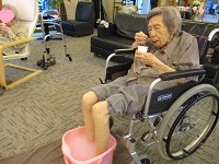 泉で足湯をしながら、かき氷を召し上がって頂きました。