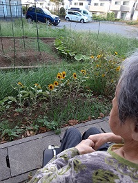 入居者様に、「久しぶりにお散歩に行きませんか?」と