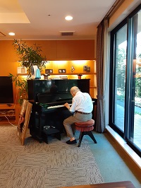 1階のラウンジのピアノで、今日も練習をしておられました。