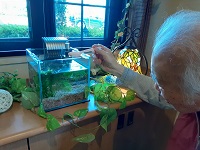 今日も、メダカにご飯をあげるお手伝いをして下さいました。