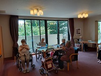 午後のレクリエーションの前に、体操を行っています。