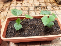 入居者様と一緒に、秋獲れの茄子と胡瓜とトマトの苗を