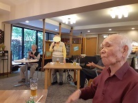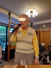 を飲みながら、歓談&施設長の司会でカラオケを楽しま