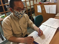 マスク不足の中、職員はいろいろな手作りマスクを着用中!!!