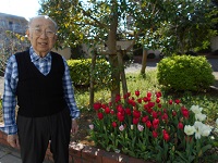 満開のチューリップを見たり、新しく植えたモッコウバラを