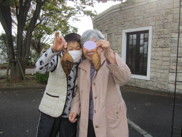 入居者様と一緒に掘り、収穫しました。