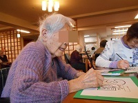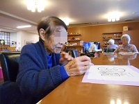 今日は最近ブームの塗り絵の様子