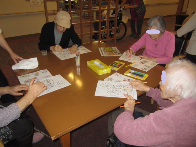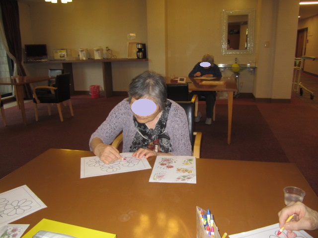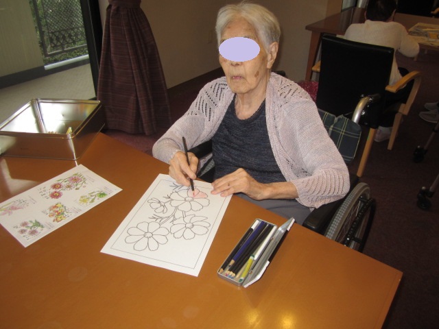 本日は、秋の花「秋桜」を見本を見ながら、描いて頂きま
