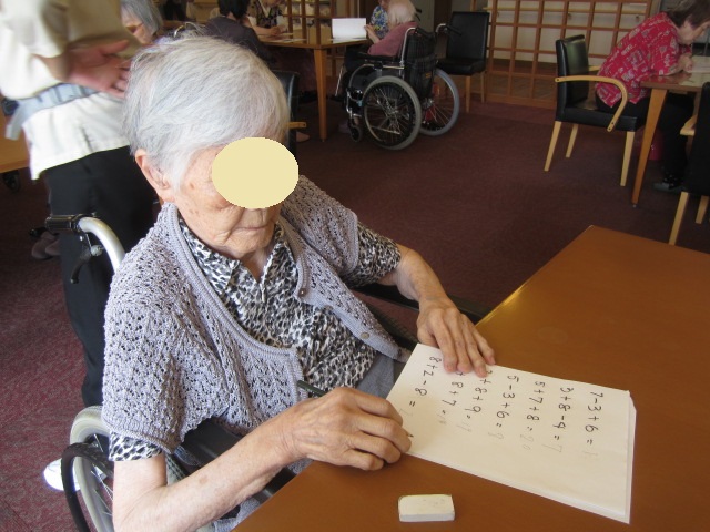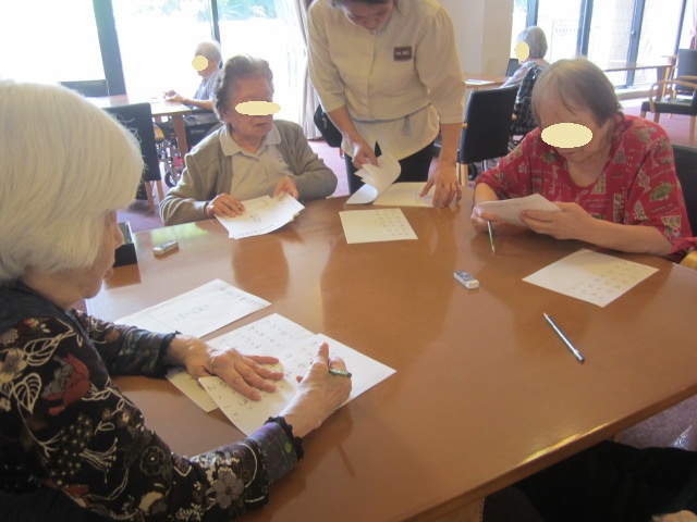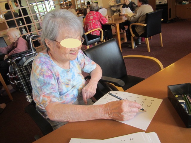 お昼ご飯の後、皆様に脳トレをして頂きました。