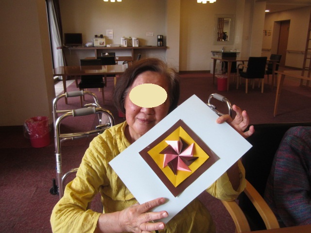 創作レクリエーションは折り紙、写生(ぬり絵)、習字
