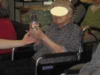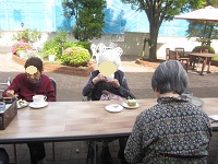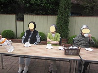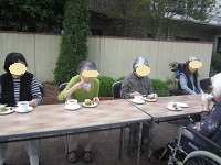 お誕生会の後に、5月生まれの皆様方とお庭でティータイム