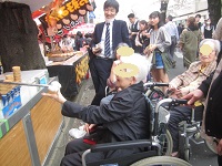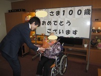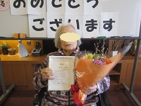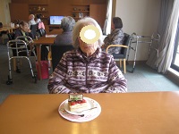 ご本人様も、大変お喜びで、お祝いのケーキを「もっ