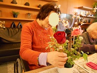 フラワーアレンジメント教室は、花が大好きなご入居者様に