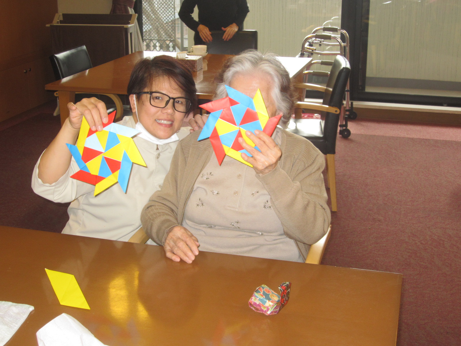 テーブル毎にトランプ、折り紙に分かれて行いました。