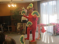 松竹梅の踊りや、南京玉すだれ、獅子の舞を