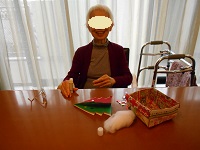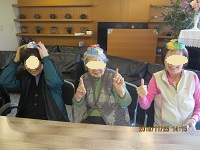 可愛く出来上がり、帽子の様にかぶられるご入居者様も
