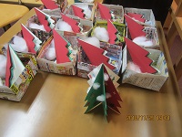 先ず、平面の紙に、シールや糊で星やサンタさん、