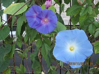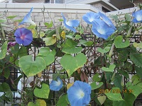 散歩中に季節外れの朝顔が沢山咲いているのを見つけ
