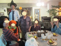仮装やハロウィン・ケーキのお茶会、近隣の子供達