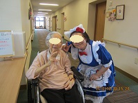 いつもの制服と違う姿の職員をご覧になり、大笑い